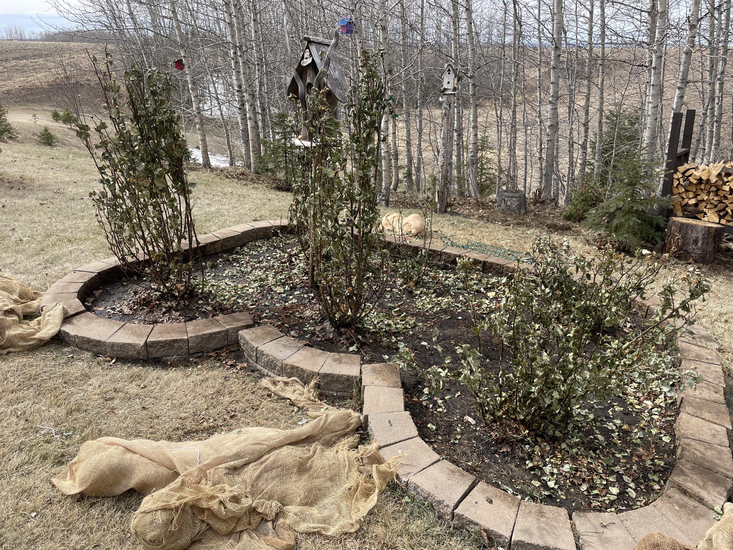 The time has come to uncover some of my roses!! Awesome!! There is green under all those insulating leaves!!
