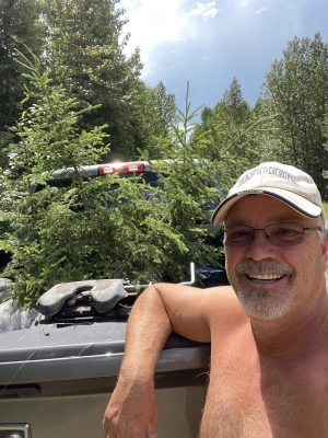 This week, I happened to be on standby, so I decided to use some company fuel and head north to one of our sites to pick up more spruce trees. With Turd in the passenger seat, we set off. Despite a few rain showers along the way, we arrived at the station.